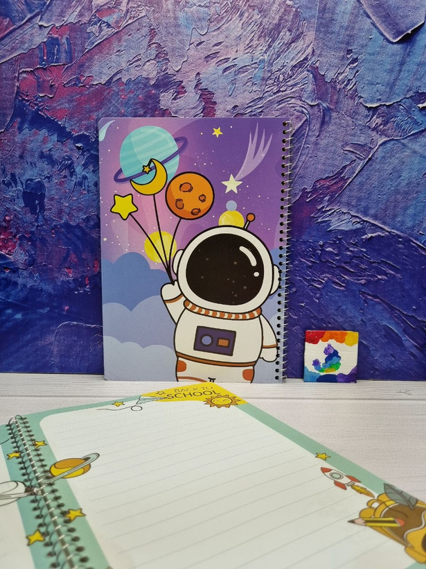 دفتر مشق حاشیه دار املا کلاس اول طرح فضانورد گلکسی کهکشانی 40 برگ