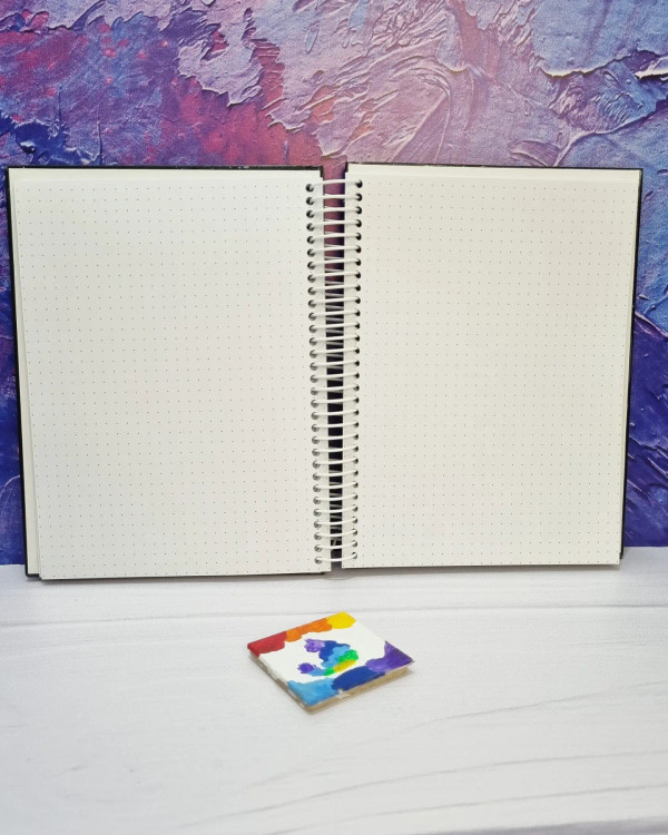 مشخصات کلی دفترامون 💙💚💜❤️ 💚گرم کاغذ ها 100 گرم هست ینی میتونید از هر متریالی که خواستید اسفاده کنید بدون اینکه نگران باشید پشت صفحه رنگ پس بده. ❤️دفتر های معمولی 70 و 80 گرم هستن اما دفتر های رنگی بانو 100 گرم هستش. 💜از این دفتر ها میتونید برای بولت ژورنال، جانک ژورنال، اسکرپ بوک، برنامه ریزی، خاطره نویسی، جزوه نویسی و... استفاده کنید. 💙جنس جلد =\u003E جلد سخت سلفون کشی شده با قابلیت پاک شوندگی ینی اگر چیزی روی دفتر بریزه جذب نمیشه و میتونید پاک کنید. 💚نوع برگه =\u003E نقطه ای 💜رنگ کاغذ =\u003E سفید ❤️سایز دفتر =\u003E A5 هست
