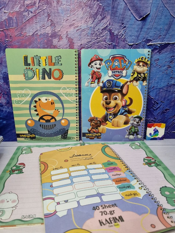 دفتر مشق حاشیه دار املا کلاس اول طرح سگ نگهبان و دایناسور 40 برگ