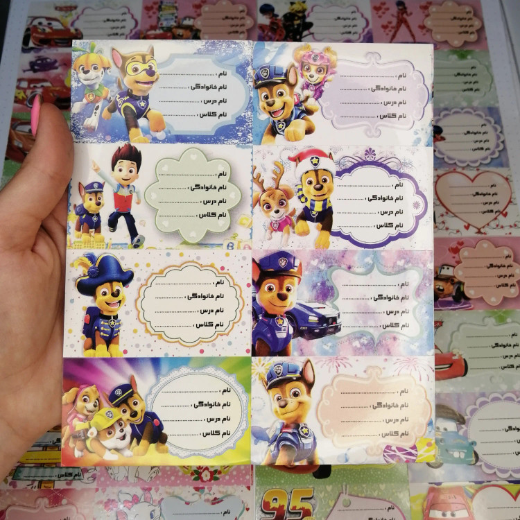 هر ورق شامل 8 برچسب میباشد که هر ورق به مبلغ 2800 تومن است در طرح های متنوع