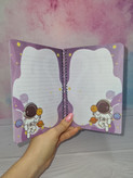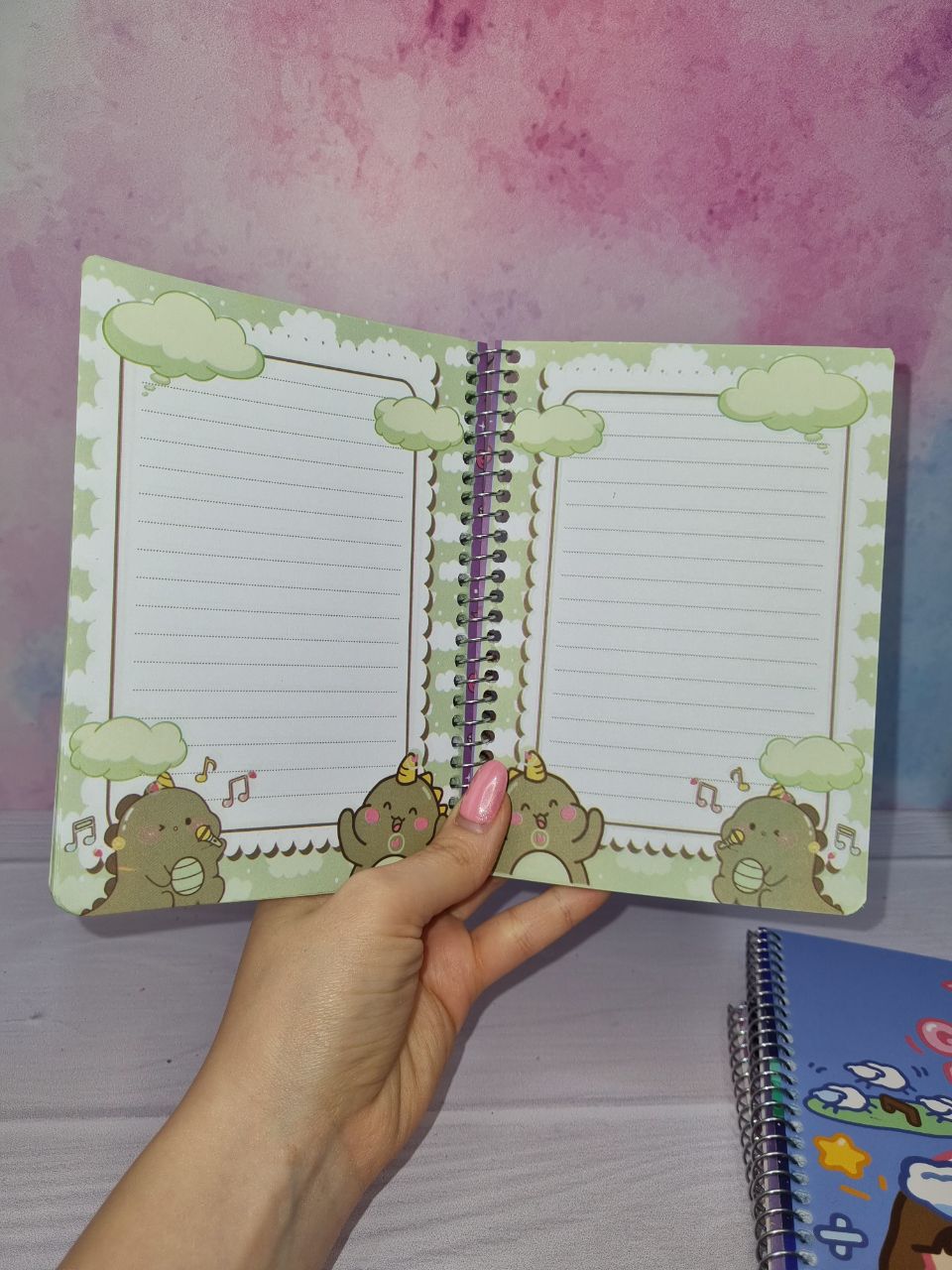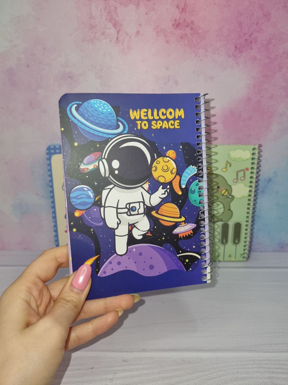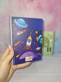 دفترچه یادداشت خط دار حاشیه دار بغل بازشو 80 برگ طرح فضانورد دایناسور دختر