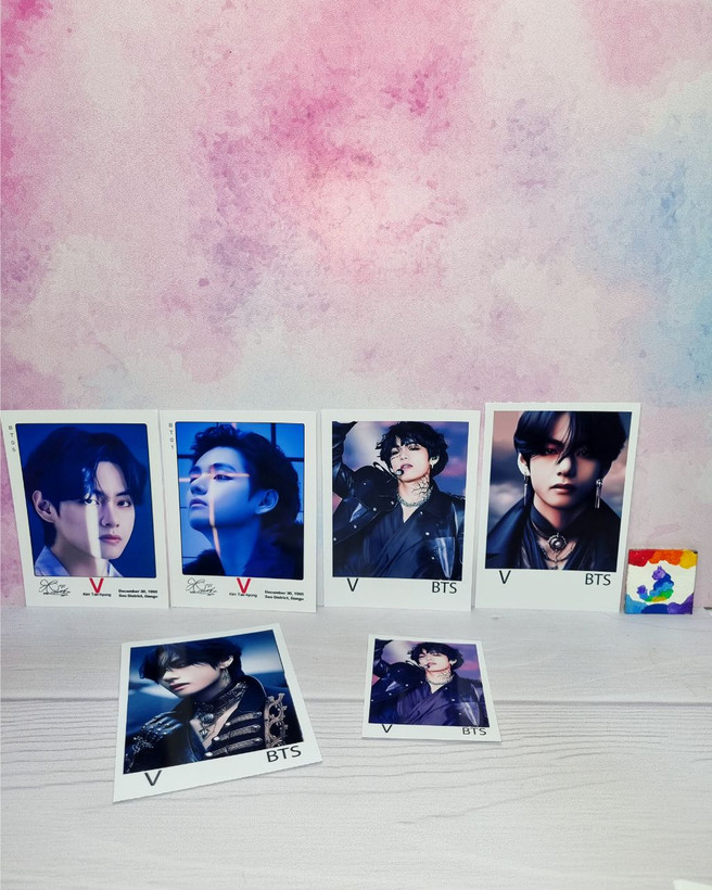 پولاروید فوتو کارت عکس طرح تهیونگ وی تاتا بی تی اس در دو سایز 10 در 15 و 7 و نیم در 9 یک عدد