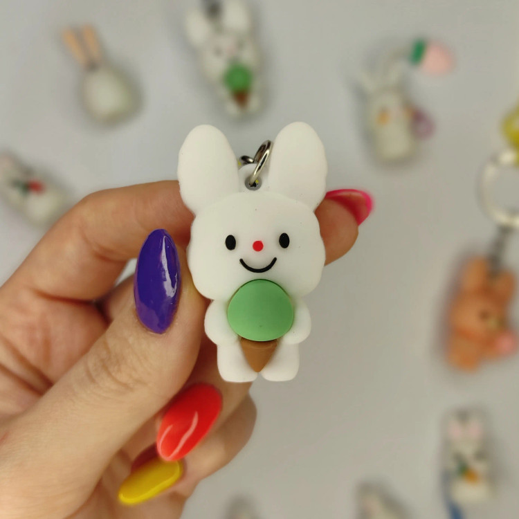 جاکلیدی سیلیکونی طرح خرگوش سفید سبز