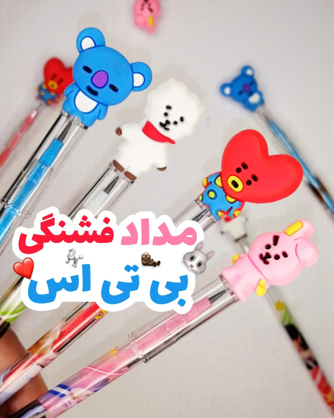 مداد فشنگی مداد فشاری با سرمدادی جدا شونده سیلیکونی طرح بی تی اس بی تی 21 تاتا آرجی کوکی کویا