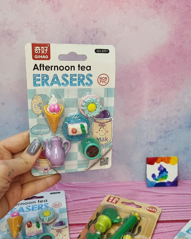 ست 5 عددی پاک کن فانتزی طرح چای عصرانه کیک شیرینی استکان قوری
